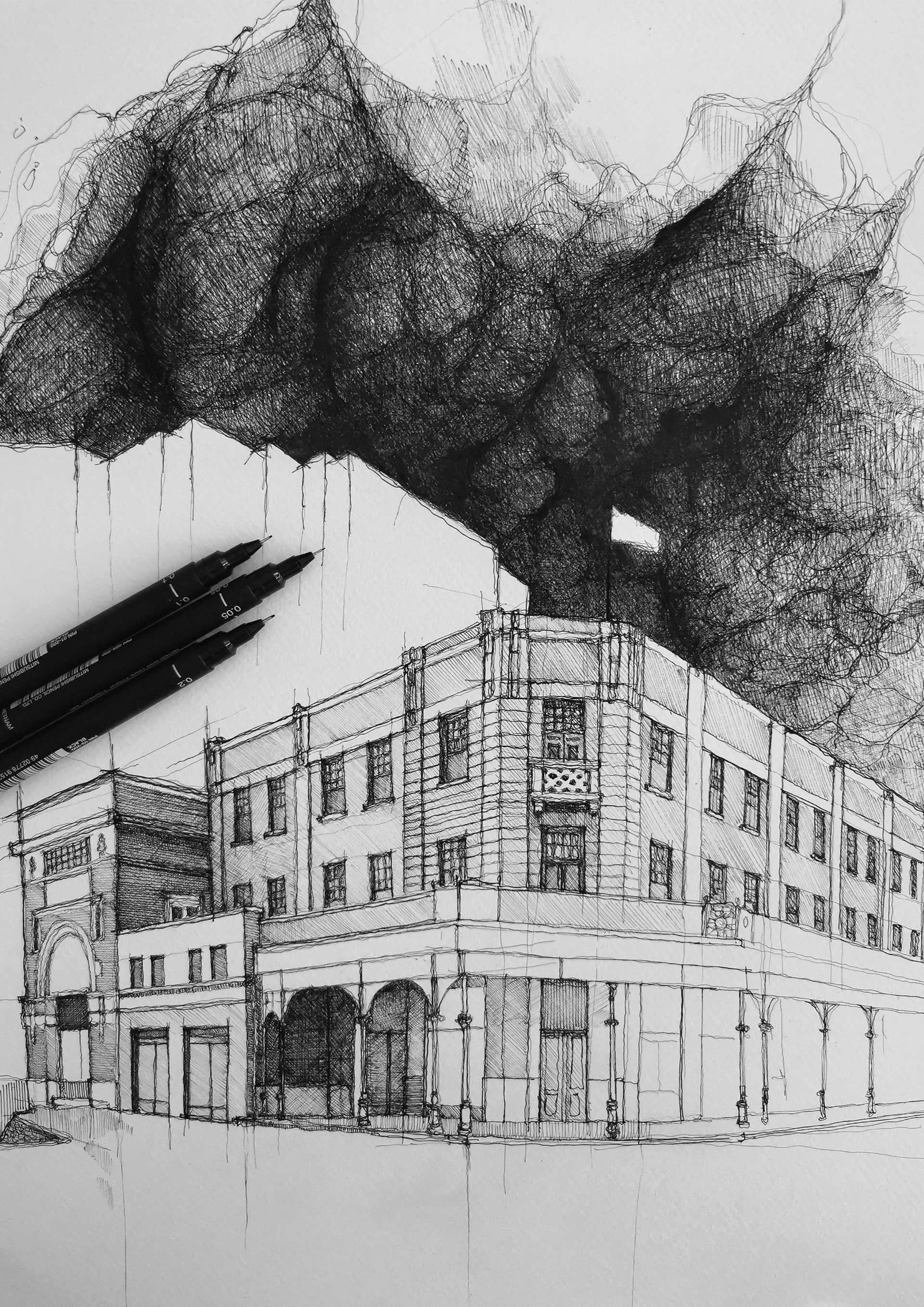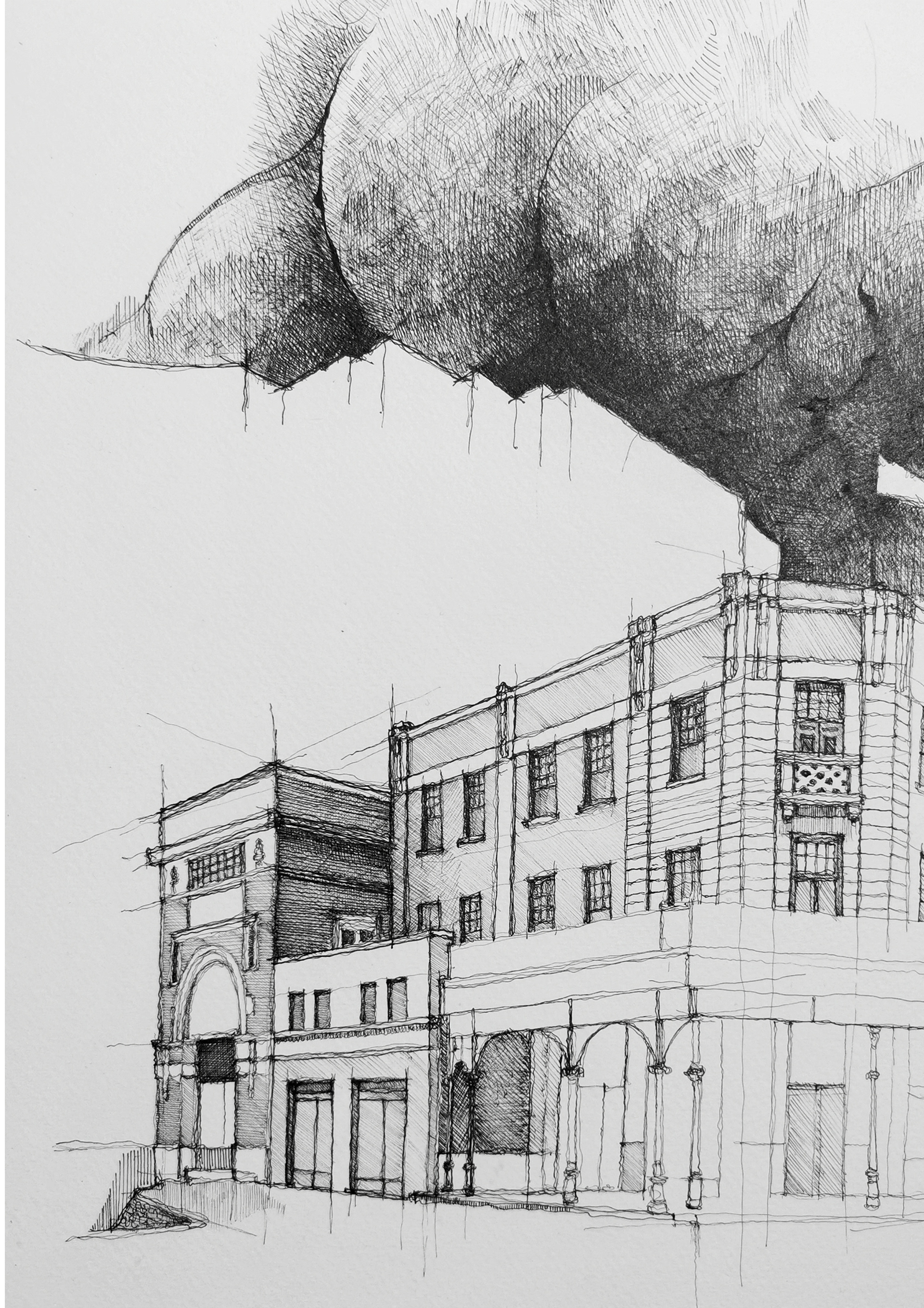 A2 / Ink x Fabriano 200gsm / Freehand, Hand Drawn Architectural Abstract